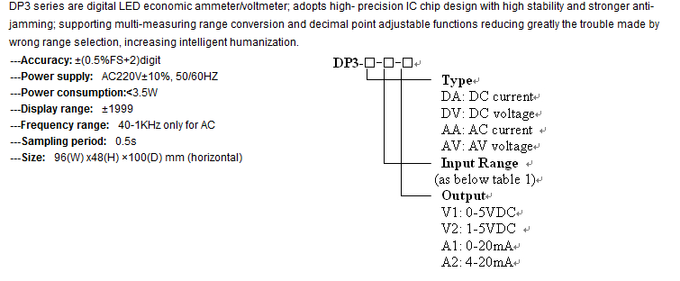 DP3 Economic Digital Ammeter / Voltmeter
