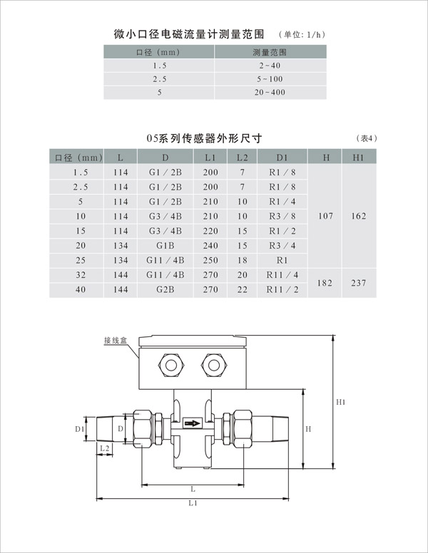 傳統電磁流量計由于受加工工藝及制造成本的限制,無法滿足用戶對微小流量的測量,05型微小口徑電磁流量計能測量低至每小時2升的極低流量。